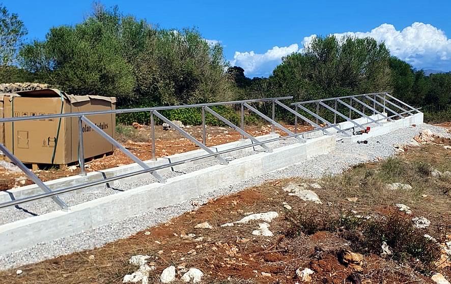 - Instalación de las placas solares sobre base de hormigón con estructuras coplanares
