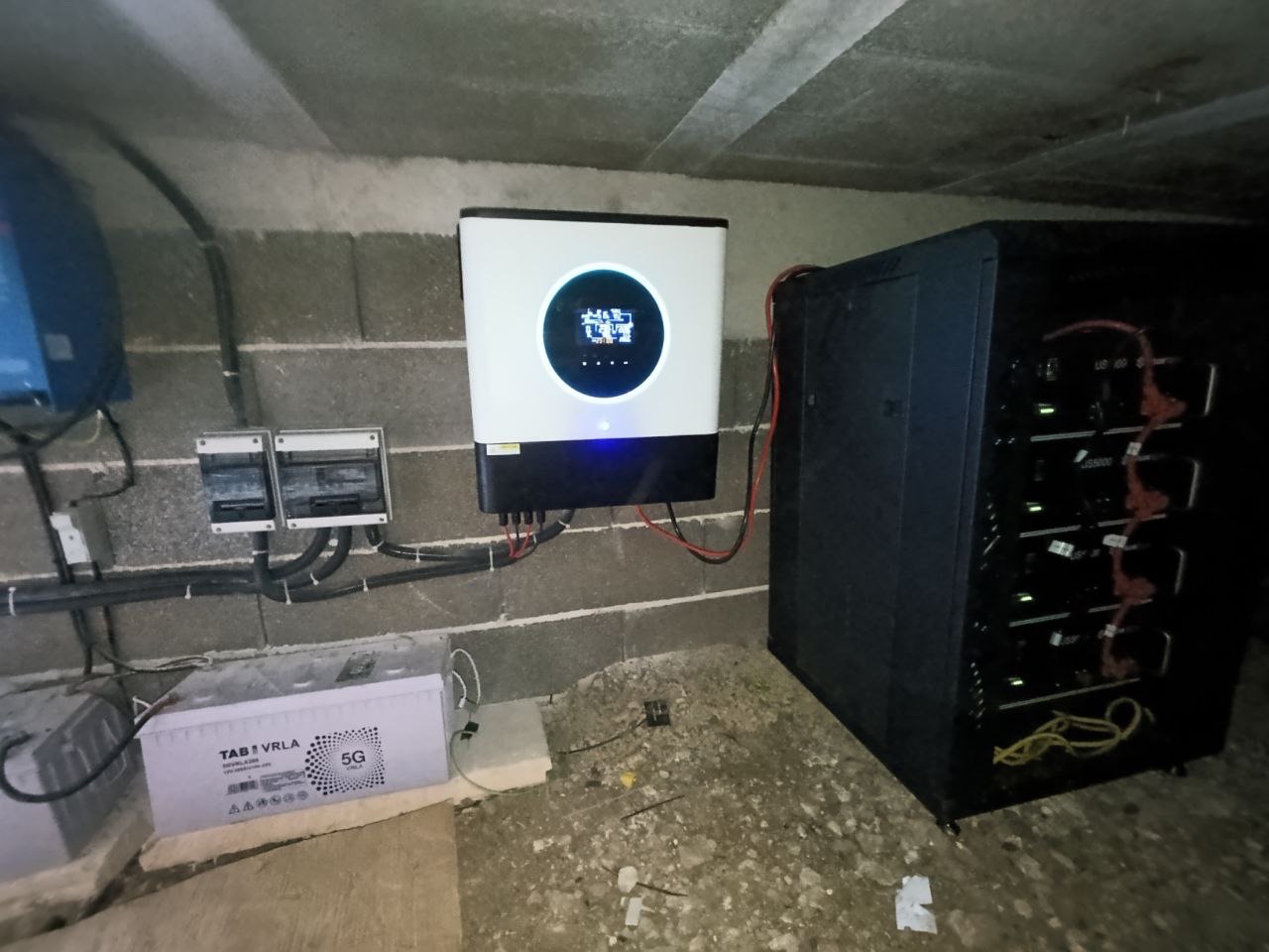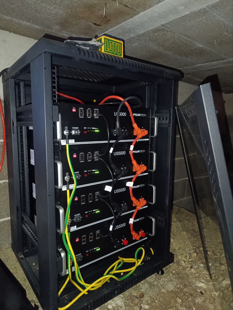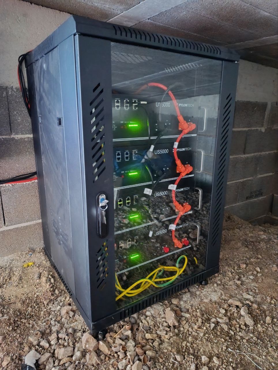 - 4 baterías solares de 4,8 kws de PYLONTECH en Armario RACK